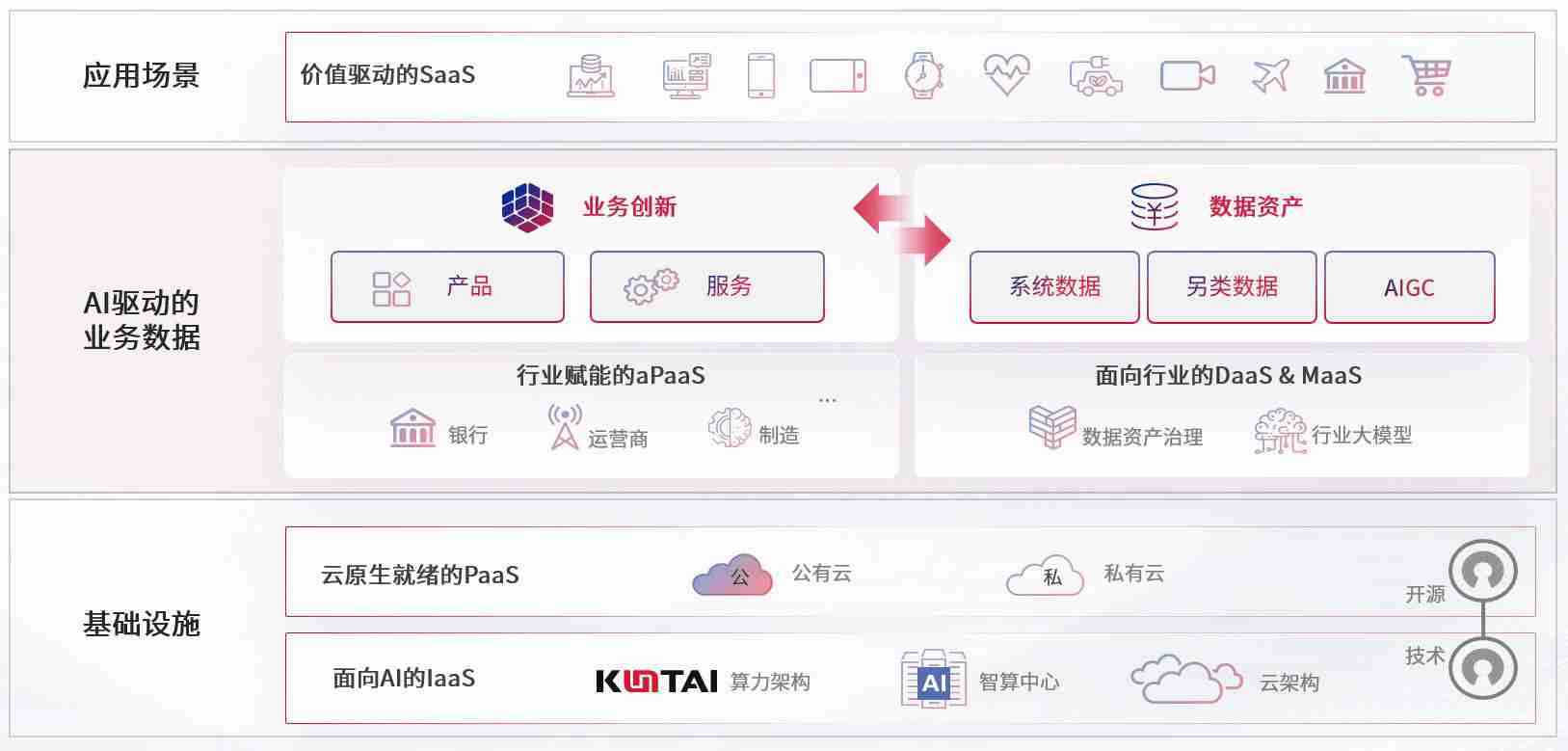 数字时代,,围绕企业数字化转型的关键要素,,Z6尊龙数码开创性的提出数云融合战略和技术体系框架,,着力在云原生、、数字原生、、、AI原生和信创产业上架构产品和服务能力,,为处在不同数字化转型阶段的快消零售、、汽车、、金融、、医疗、、、、政企、、教育、、、、运营商等行业客户提供泛在的敏捷IT能力和融合的数据驱动能力,,,构建跨界融合创新的数字业务场景和新业务模式,,,助力企业级客户建立面向未来的核心能力和竞争优势,,,,全面推动社会的数字化、、、、智能化转型升级。。。。