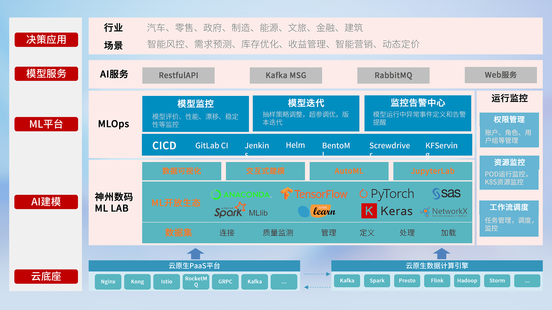 数据+模型双引擎驱动,,面向智能服务场景,,,,快速灵活利用AI技术,,支持业务决策,,助力企业智能化转型破局。。。。